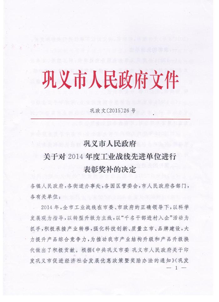 對包括我公司-河南省杜甫機械制造有限公司在內(nèi)的12家榮獲“2014年鞏義市工程技術(shù)研究中心”稱號的企業(yè)各獎補2萬元。