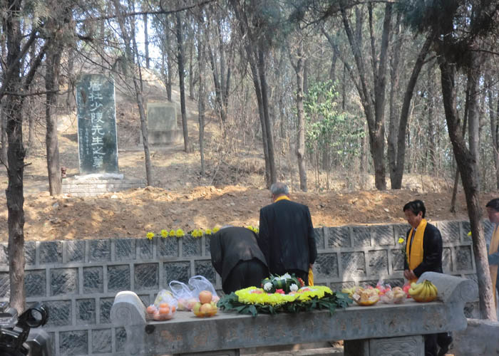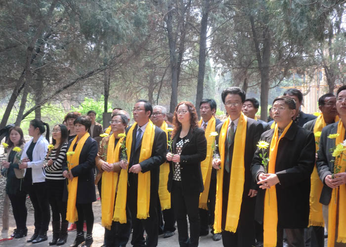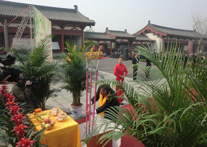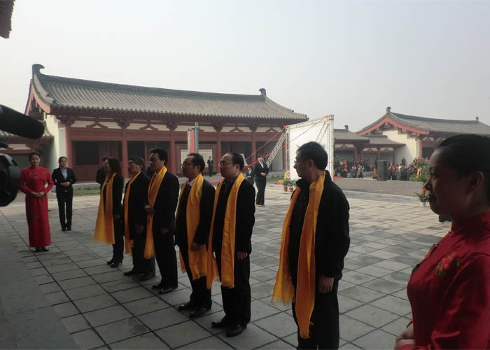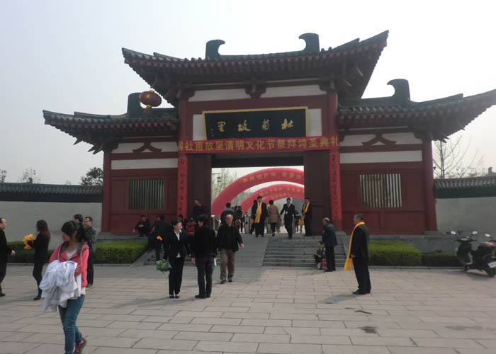 2013年4月3日,上午10時,莊嚴肅立的祭祀隊伍在杜甫故里靜靜佇立,在主持人的引領下,主祭人緩緩步入祭祀主會場。在行過凈手之后,首屆杜甫故里清明祭拜“詩圣杜甫活動由此拉開序幕。主祭人神情肅穆,儀態莊重的分別完成了凈手、奠帛、誦讀祭文等環節,童聲誦讀的祭文,余音裊裊,猶如天籟,磬入心脾;隨后,朝圣隊伍和各界群眾在音樂的伴奏下向詩人堂三鞠躬,以此告慰詩人在天,整個祭祀活動達到了高潮。這一刻,種種情愫穿越時空,華夏子孫與我們自己的精神大師心照神交,我們心有所依,情有所傍,文化傳承的責任與擔當永世不忘。