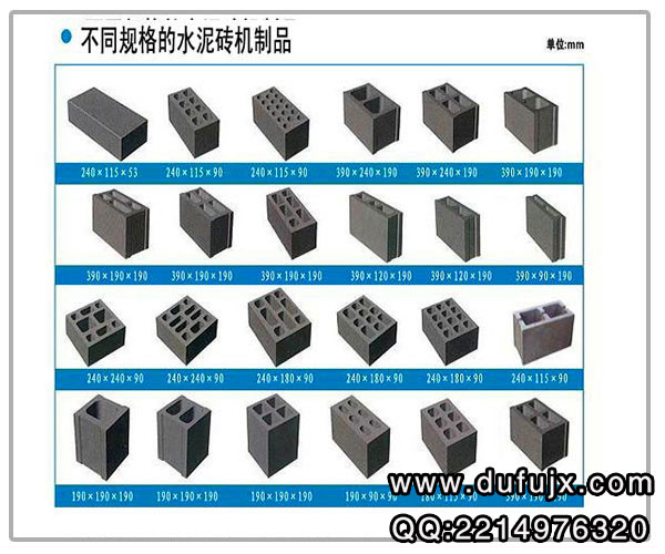 1市場(chǎng)上比較常見(jiàn)的水泥磚機(jī)的制品的規(guī)格是 240×115×53mm標(biāo)準(zhǔn)磚,簡(jiǎn)稱標(biāo)磚;240×115×90mm八孔磚: 390×190×190mm空心磚等多種規(guī)格
