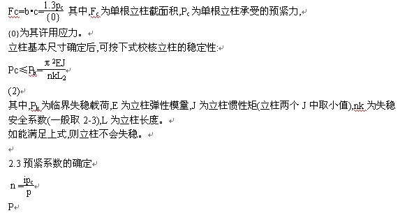 壓磚機鋼絲纏繞機架必須預緊到一個合適的程度,過緊,在預緊過程中就會破壞或使機架體積過于龐大;過松,則機架在承受工作載荷時產生梁柱脫開,甚至產生破壞。預緊系數的選擇以工作時梁柱不脫開為界。